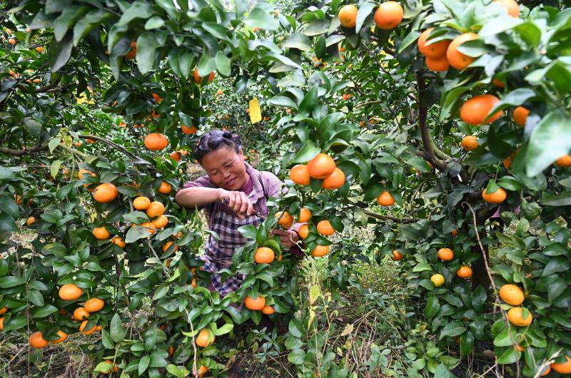 立冬时节,柑橘飘香。富溪镇农民抢抓农时,在果园里开展采摘、套袋、吊枝等农事作业,一派繁忙景象。
