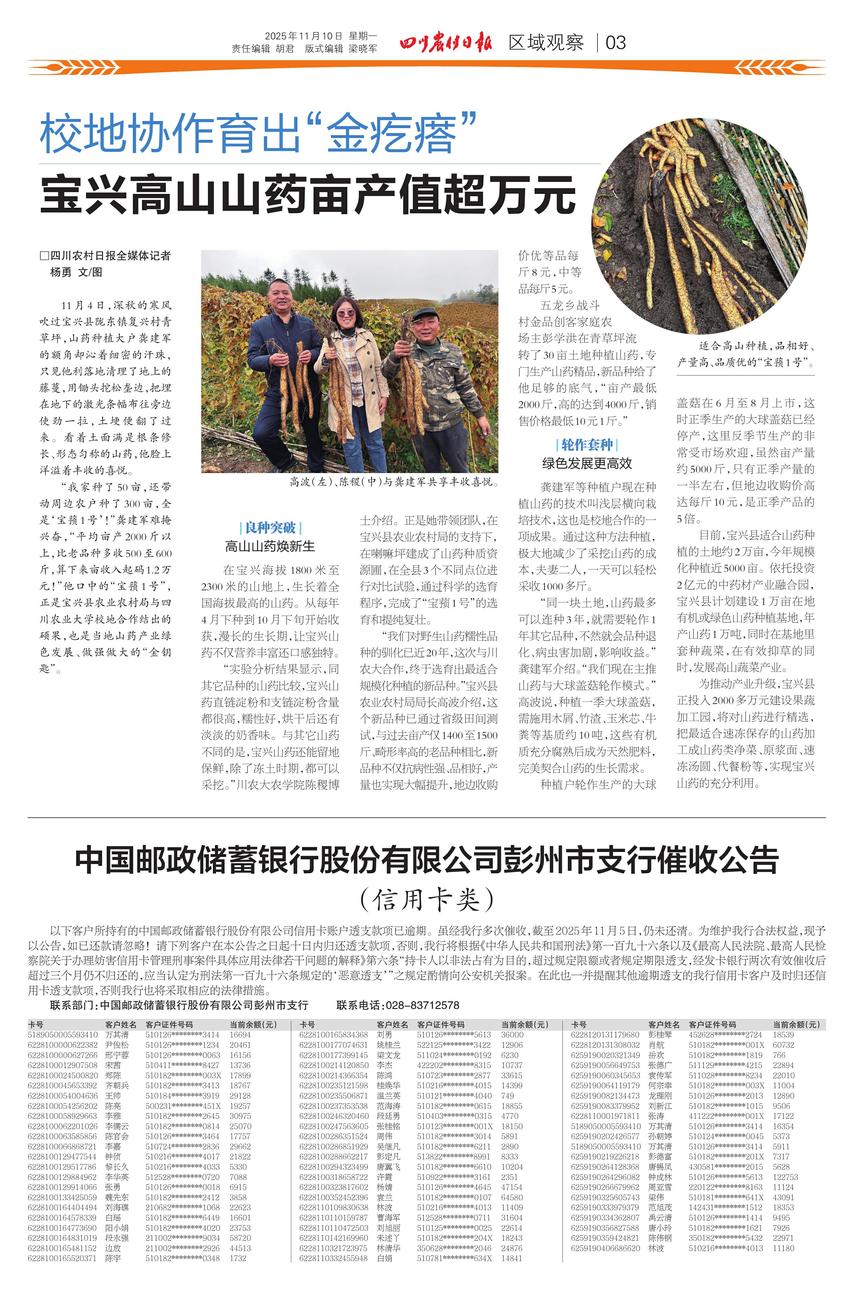 中国邮政储蓄银行股份有限公司彭州市支行催收公告