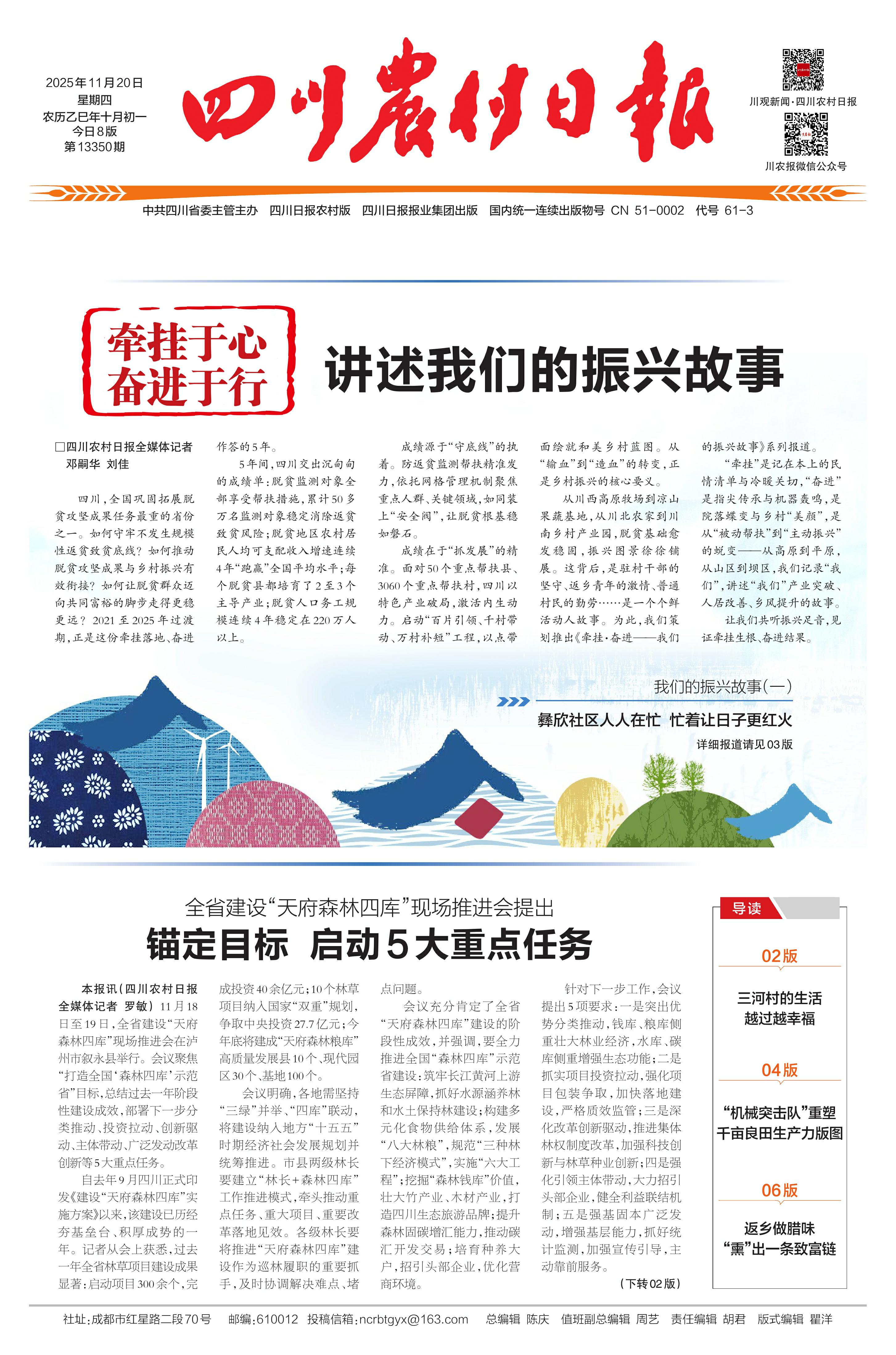 本报讯(四川农村日报全媒体记者 罗敏) 11月18日至19日,全省建设“天府森林四库”现场推进会在泸州市叙永县举行。会议聚焦“打造全国‘森林四库’示范省”目标,总结过去一年阶段性建设成效,部署下一步分类推动、投资拉动、创新驱动、主体带动、广泛发动等5大重点任务。