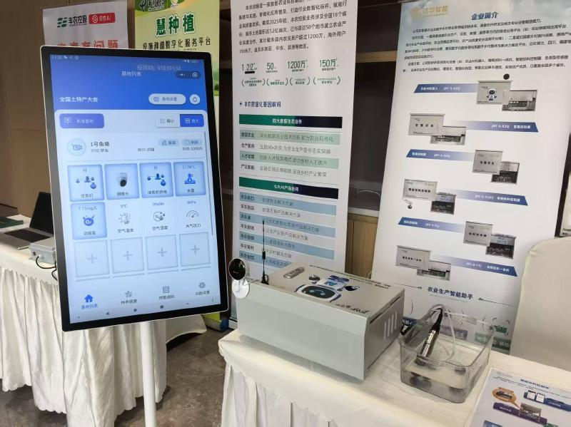 此时,场外的企业成果展示区,参展企业达华智能的产品总监李杨正为嘉宾讲解一套智能控制设备的优势:“该设备可以判断什么时候向鱼塘增氧、投料效果最佳,并给养殖户提出建议。”