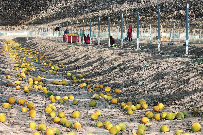 12月7日,在江苏连云港市灌云县杨集镇利华村,村民收获成熟的瓜蒌。当日是大雪节气,各地农民抢抓农时,有序开展冬季农业生产。新华社发(吴正祥 摄)