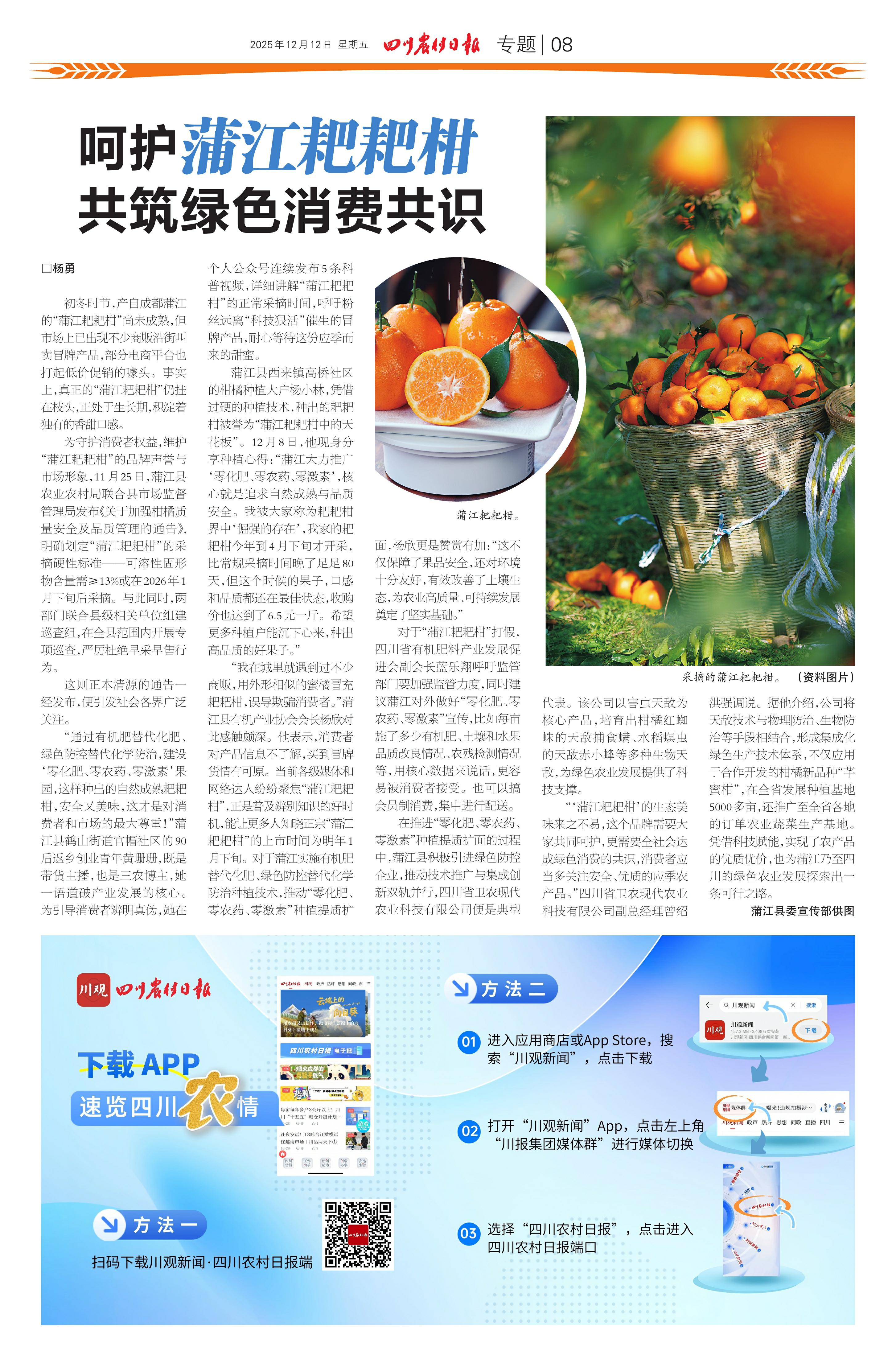 呵护蒲江耙耙柑 共筑绿色消费共识