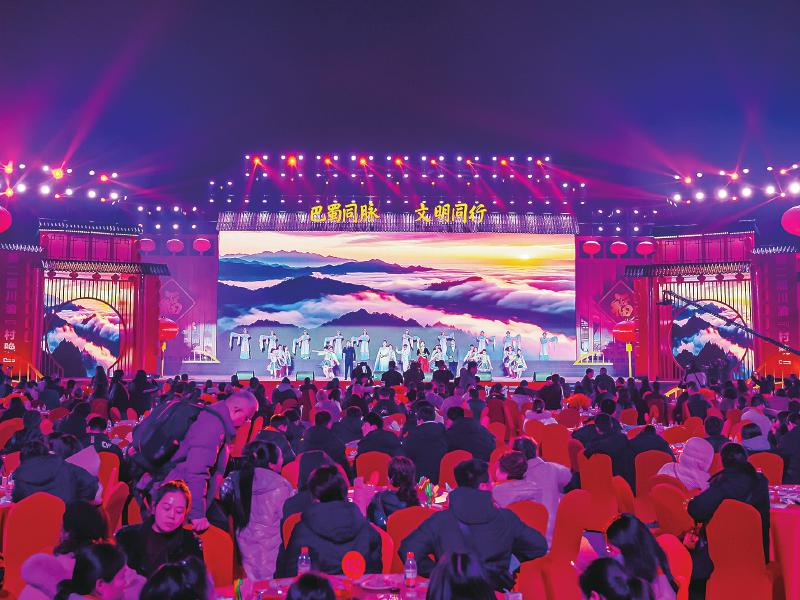 本报讯(四川农村日报全媒体记者 袁宇君 文/图)江风裹着麻花脆香,风车转着童年记忆,12月17日,第二届川渝“村晚”在遂宁市船山区圣平岛热闹开演。这场沾着泥土气的文化盛宴,所有节目均由川渝两地农民自编自导自演,既是乡村风貌的鲜活快照,更是巴蜀儿女以文化为纽带的同心告白。