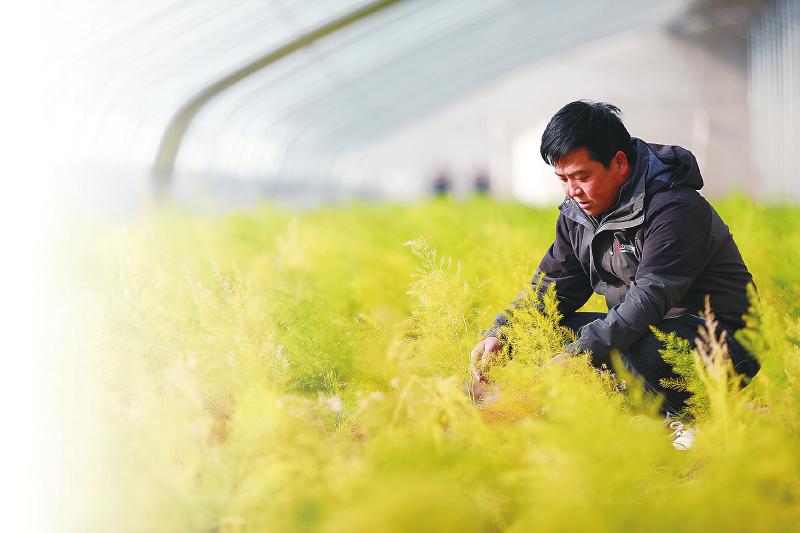 这里是当地现代生态农业(芦笋)种植示范园的核心区域,园区占地350亩,其中芦笋种植面积达220亩。虽建成仅一年有余,示范园却凭借科技创新赋能、全产业链布局、联农带农兴村的发展路径,让一株株小芦笋催生出年产值超千万元的大产业。