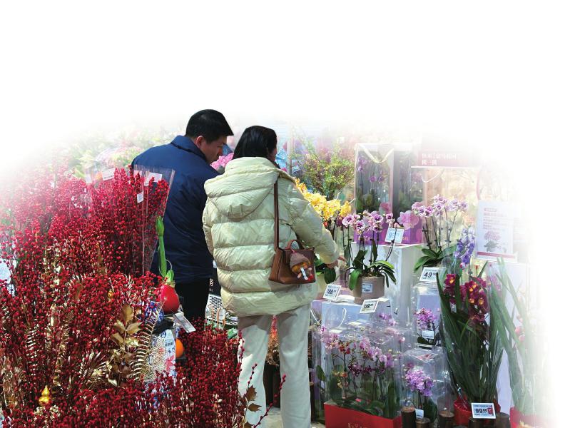 花色丰富、花期长的大花蕙兰在市场上同样备受青睐,单盆的价格从几十元到400元不等,其中粉色品种格外受欢迎。“这盆蝴蝶兰要 388 元,超预算了。”顾客杨莉展示着手机 里 拍下的心仪花卉,语气中带着惋惜。事实上,尽管年宵花整体价格较去年下降,但经过人工造景的高端盆景,价格依旧不菲。主营室内景观设计的商户汪建,指着一盆标价1200元的北美冬青解释:“单是修剪、盘扎,再搭配苔藓、奇石的人工成本,就要700元。”