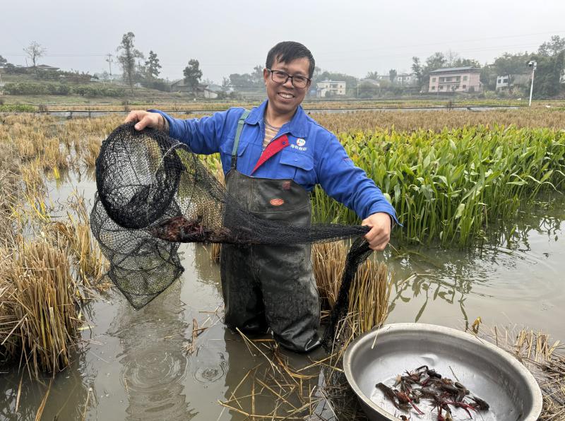 寒冬时节的泸县,捕虾和售虾的火热场景随处可见。近年来,因为稻虾综合种养效益显著,吸引了越来越多农户参与,小龙虾已成为当地农户增收的“法宝”。同镇的何辉从国企退休后二次创业,2025年在泸县承包60余亩稻田养虾。“2025年清明节期间,10天就卖了6万多元!”他欣喜地回忆说。
