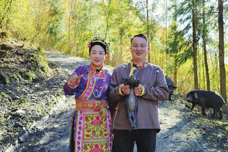 最初,夫妻俩在乡里开藏家乐。端上桌的腊肉、香肠等美食,常让游客品尝后忍不住追问:“这肉外卖不?”一句真诚的询问,让他们萌生了“自己养、自己卖”的念头。