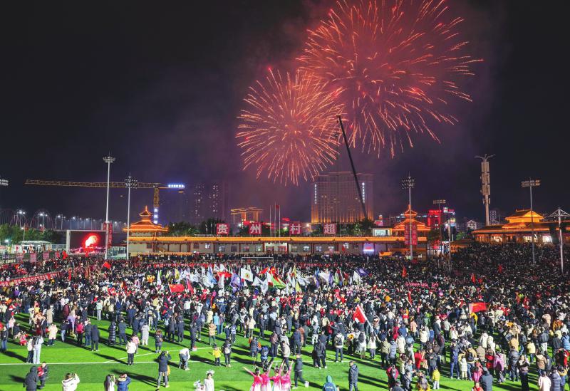 贵州省榕江县 1月2日,伴随大利侗寨(大利村)足球队对阵扒王村足球队的揭幕战打响,发源于贵州省黔东南苗族侗族自治州榕江县的草根足球赛事“村超”正式拉开了第四届的序幕,上百支村队参与,赛事规模升级。图为人们在活动现场观看烟花表演(无人机照片)。 新华社记者 杨文斌 摄