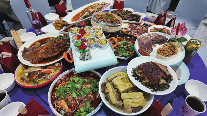 变的,终究是碗里的滋味。黄爕鑫指着桌上的菜单,细数坝坝宴的变迁:“过去的9大碗,重油重荤,主打实在,吃的是个富足劲儿。现在不一样了,海鲜、时令蔬菜、精致甜品都能上席,分量依旧扎实,口味却更讲究层次、更注重健康,也贴合了现代人的饮食需求。”