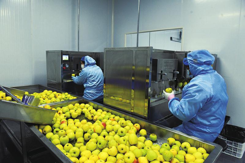 笔者在生产现场见到,伴随着“嘎吱嘎吱”的机器运转声,工人们有序进行着高原苹果、红脆李、西梅等高原果蔬深加工。