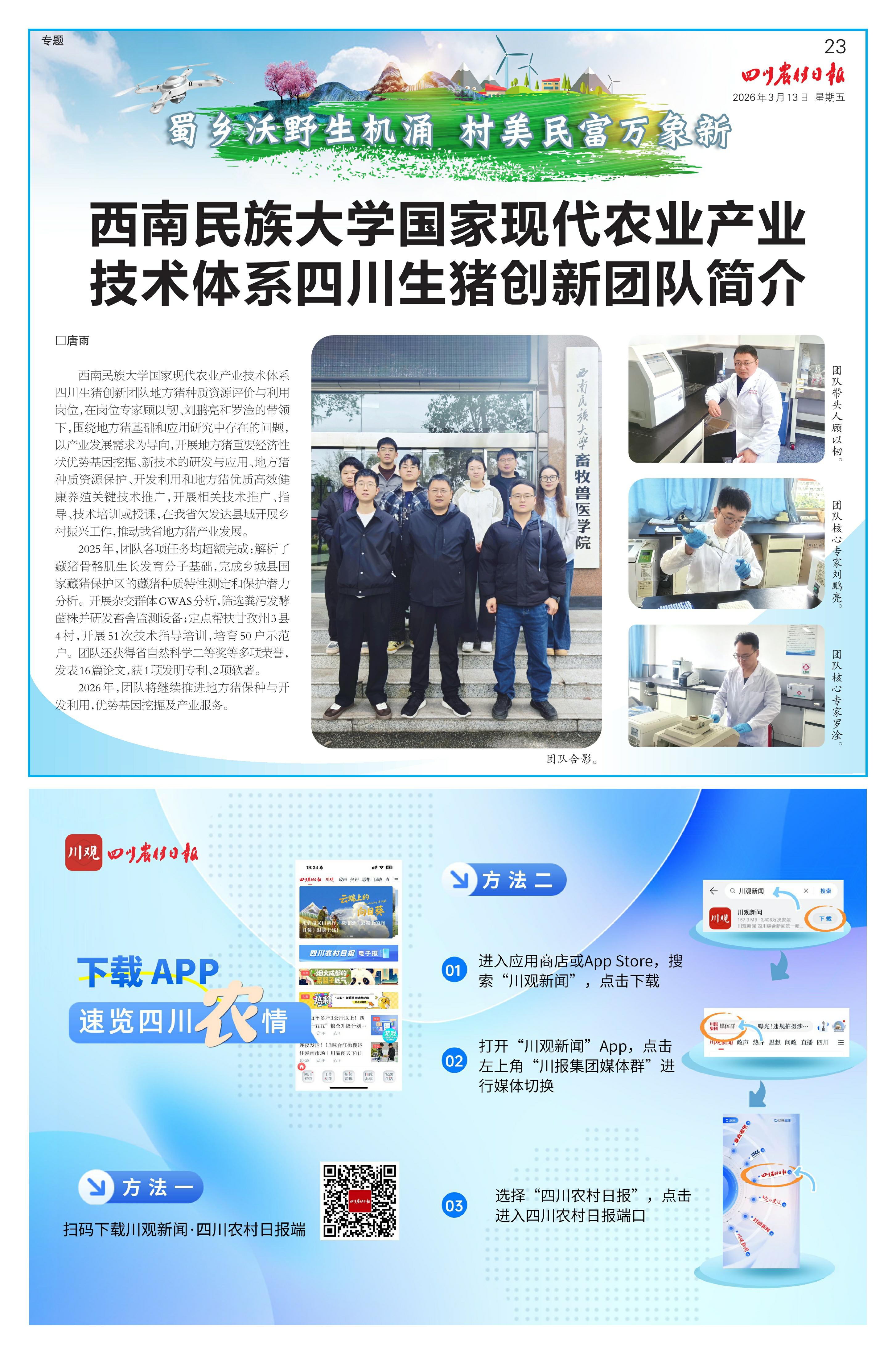 西南民族大学国家现代农业产业技术体系四川生猪创新团队简介