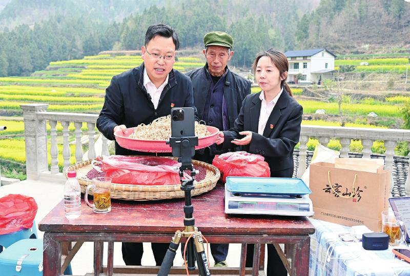 农家小院里、产业基地旁、油菜花海间,一场场接地气的助农直播轮番开启,主播们热情推介,评论区下单留言刷屏,订单提示音此起彼伏……春日的广元市朝天区,田间地头处处涌动着直播助农的热潮,当地优质农特产品搭乘“云端快车”走出深山,奔赴千家万户。