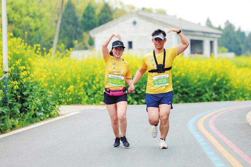 提档升级的乡村路网、协作共建的现代农业园区与和美乡村示范点,被这条赛道串珠成链。选手们穿梭在金灿灿的油菜花海中,步步皆景,宛如奔跑在乡村建设的秀美画卷里。来自成都市大邑县的跑友张雪梅首次来到盐亭参赛,便斩获5公里女子组第4名的好成绩,她直言体验感极佳:“沿途有油菜花田相伴,参赛感受特别好。”最令她感动的是,沿途村民自发在房前呐喊助威,热情满满。她感慨,“村跑”不仅丰富了乡村文化生活,更以体育活力为乡村全面振兴注入了强劲精神动力。
