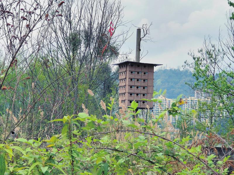 罗向冰指着岛上几排架设于树干间的木质鸟巢箱,神情满是欣慰与自豪:“瞧见没?这处‘豪华旅馆’设有72个鸟巢房间,常年住着不同种类的候鸟,十分热闹。”