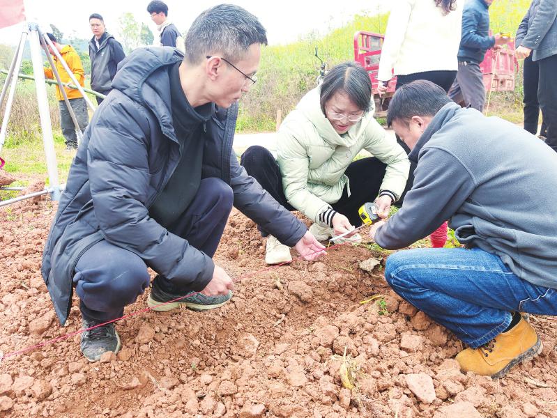 播种结束后,雁江区农业技术推广中心农技站负责人庄娟蹲下身,指导村民为刚播下的种子覆土、浇水,再小心翼翼地盖上一层薄膜。“这几天气温低,要预防冻害。”她拍了拍手上的泥说,“后面病虫害预防、肥水科学管理,一环都松不得。”