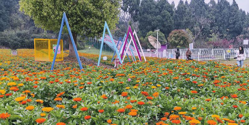 春风送暖,花溪叠翠。3月21日,资阳市雁江区天府花溪景区内,大片金盏菊迎来盛花期,金黄、橙红的花朵层层叠叠铺满平地与山坡,与翠绿叶片相映成趣,吸引众多游客打卡游玩。