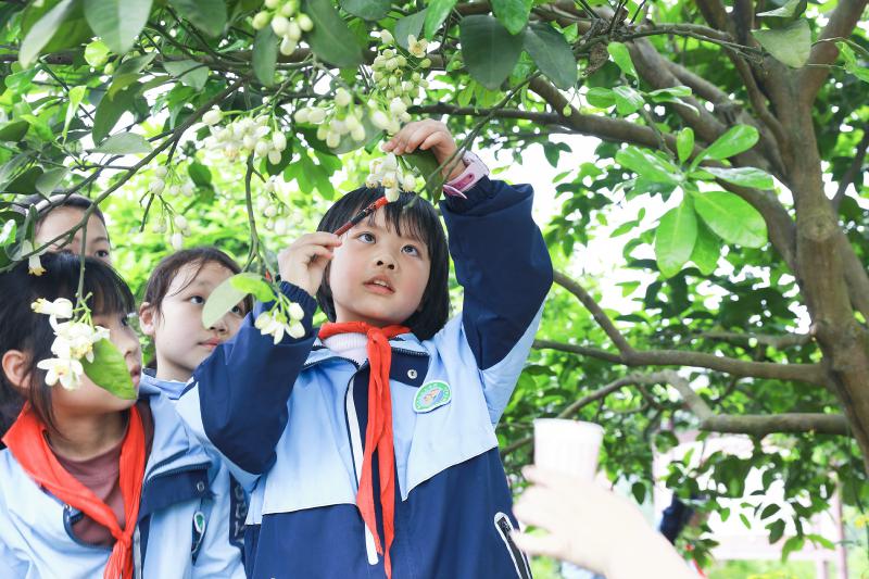 眼下正是泸州市合江县真龙柚开花授粉的关键期。3月30日,该县真龙镇中心校把“小花农”自然课堂搬到真龙柚博览园,学生们通过学习真龙柚花粉采集、授粉液调制、人工辅助授粉等技艺,体验田园劳动的乐趣。赵霜 特约通讯员 李贵平 摄影报道