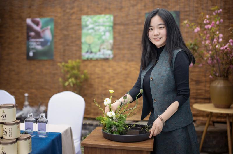 “缘分”是唐思琪采访中常提起的词。2018年,她来到崇州,被罨画池的历史底蕴、川西林盘的雅致景致深深吸引,于是选择成为了一名“新崇州人”。她说:“这里诗酒花茶相融共生,和我想做的乡土花艺太契合了。”