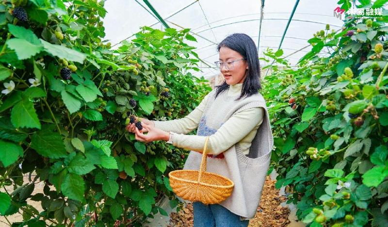 潘杰引进了“黑莓1号”“黑莓3号”和“红树莓”三种优质的黑莓种苗,全程采用绿色标准化种植管理模式。今年,首次挂果便长势喜人,结出的果实果肉厚实、甜度适宜。采摘期从3月持续到6月底,长达4个月,为游客提供了充足的采摘体验时间。
