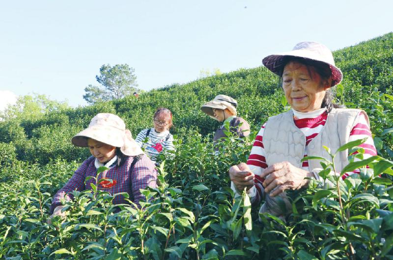 4月10日,在宣汉县黄金镇康乐村漫山遍野的茶垄间,茶农们身挎竹篓,忙着采收茶芽。“我现在每天采5斤茶,每斤30元。农闲时,我在茶园除草、施肥。算下来,一年有1万多元的收入。”当地村民刘大妈高兴地说。
