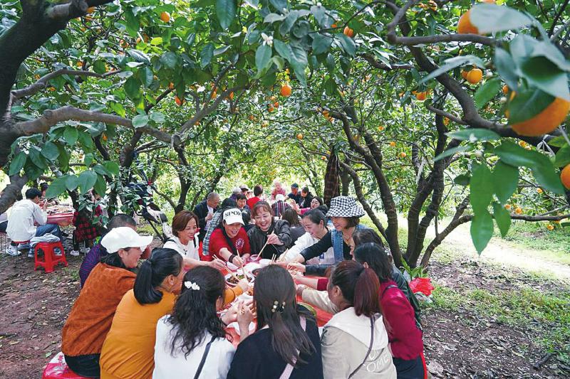 走进团结村,橘花飘香,人声鼎沸。围绕橘花广场,主办方精心设置了文艺表演区、展示展销区、游园娱乐区、风味美食区、休憩品茗区及橘园坝坝宴区,六大功能区各具特色,亮点纷呈。